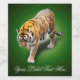 A photograph of a tiger walking toward you on a colourful green gradient background. You can add text below to personalize your label or delete the text.
