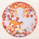 Tiger inside Flying Leaves In Fall On Lavender Sky Round Paper Coaster