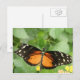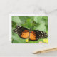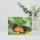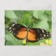 This stunning postcard features a photograph of a beautiful tropical butterfly. This species is called a Tiger Longwing Butterfly (Heliconius hecale). It has beautiful orange patches on each wing. The rest of the wing is black and is patterned with white spots. It comes from South America. The photograph was taken using macro photography for a stunningly detailed result.