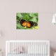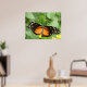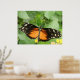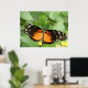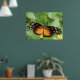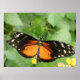 This beautiful poster features a photograph of a beautiful tropical butterfly. This species is called a Tiger Longwing Butterfly (Heliconius hecale). It has beautiful orange patches on each wing. The rest of the wing is black and is patterned with white spots. It comes from South America. The photograph was taken using macro photography for a stunningly detailed result.