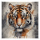 A Tiger with detailed watercolor with expressive eyes is portrayed against a soft, blurred background. The natural colours enhance the lifelike appearance.