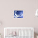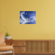 White tiger lays on a crescent moon over reflecting water with stardust and pixies or fairies around fantasy 20x16 sized poster