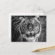 A postcard with a black and white photograph of a tiger.