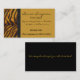 Beautiful gold and black business card, with a tiger print on the left of the card, with a black braided edge. Text area is a golden brown and is customizable to be any colour you want. Customize to suit your business needs.