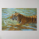 Afternoon Swim is a painting of a tiger swimming in afternoon sun.