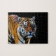 Stunning photograph of a beautiful tiger standing out against a black backdrop.