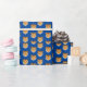 Wrapping paper shown with a cute tiger print on a Blue background.