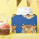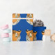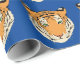 Wrapping paper shown with a cute tiger print on a blue colour background.