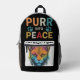 This groovy bagpack design features the message "Purr into Peace" in a colourful, hand-lettered style. Each letter bursts with a different vibrant hue, creating a playful and eye-catching look. Perfect for tiger lovers who embrace a touch of whimsy!