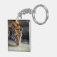 Cet extraordinaire porte - clé graphique de tigre présente une photo de gros plan colorée d'un tigre d'un côté et de l'autre une photo de tigre d'un tigre qui boit d'un trou d'eau. Un bel accessoire pour fixer vos clés.