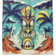 Brighten up your bath with this cool tiki beach scene with palm trees on a shower curtain.