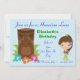 This Hawaiian luau birthday party invitation features and hibiscus flowers around a Tiki god and customizable text fields for your party information.