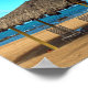 Photo of tiki huts and blue water of the Caribbean at St. Croix in the US Virgin Islands.