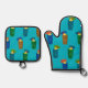 Tiki Mugs Retro Hawaiian Tropical Drinks Teal Oven Mitt & Pot Holder Set