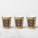 Tiki party theme paper cups feature a rustic wood sign in the centre with "Tiki Time" typography and personalized names and date bordered by Tiki masks, pineapples, hibiscus flowers, palm and monstera leaves. Perfect for tropical, luau and beach theme celebrations such as a wedding or engagement party, shower or anniversary.