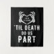 Wedding party or reception banner with the quote "'Til death do us part" with skeleton hands forming a heart. Black backdrop with an editable date and the bride and groom's initials. Be sure to visit our collection to see more coordinating items that match this design for your special event.