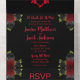 This unique Gothic style wedding invitation is striking and bold, with a black background that exudes an air of mystery and sophisticated elegance. Deep red and black roses adorn the 4 corners of the invitation, which adds a romantic, timeless touch to the design. The text, which is totally customizable in every way, is shown in matching red. This invitation will set the tone for a memorable and unique wedding celebration. Edit text from the product page or to change font styles or colour, use the design tool.