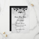 A black crystal chandelier and eerie type decorates this Save the Date on a marble background. It is the coordinating Save the Date for the Til Death Do Us Part Marble Wedding Collection. If additional coordinating items are needed just contact us at prettyfancyinvites@gmail.com with your request.