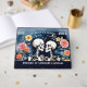 The centerpiece of this design features the lovers' skeletons entwined in an eternal embrace, a poignant symbol of love that transcends mortality. Adorned with watercolor gothic floral decor, the scene is brought to life with unique gothic wildflowers, adding a touch of delicate beauty to the otherwise dark theme. This juxtaposition of skull and skeleton elements with romantic goth wedding aesthetics creates a truly unforgettable experience for you and your guests.