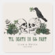 These elegant gothic "Til Death Do Us Part" Irish St. Patrick's Day wedding square stickers feature hand-drawn Irish & gothic themed illustrations in black ink, showcasing husband and wife skulls and a black crow adorned with green roses, leaves, berries, wildflowers and green clovers. Elegant ivory background. Personalize with your wedding details. All text is editable.