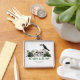 This romantic goth "Til Death Do Us Part" Irish St. Patrick's Day wedding key chains feature hand-drawn Irish & gothic themed illustrations in black ink, showcasing husband and wife skulls and a black crow adorned with green roses, leaves, berries, wildflowers and green clovers.