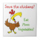 A funky chicken wants you to save the chickens & eat more vegetables!