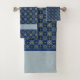Tiled Flowers Pattern Bath Towel Set. Simple flowers nestled in tiles of royal blue in a sea of teal seamless patterns to enhance your home bathroom décor. Towels are a chic and stylish accent accessory to help compliment your color scheme and style of the main, guest, or master bathroom. I would be happy to rescale, tint, or design with you in mind, just message me to get started.