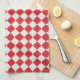 Tiled Red and White Diagonal Woven Pattern Kitchen Towel