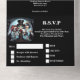 With its tear-off RSVP strip, our invitation is not only spooky but also practical, ensuring a seamless response from your beloved guests. Editable and budget-friendly, it allows you to personalize every detail without breaking the bank. The Skeleton Bride and Groom standing in a graveyard featured on the design add a whimsical touch, while the ghoulish skeletons wearing formal tuxedos and soft flowing chiffon skirts evoke an aura of elegance and playfulness.