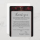 Souhaitez à vos invités une soirée de bonheur, et merci de partager votre journée spéciale avec vous avec ce carte de remerciements crânien. Le libellé express vos remerciements sincères aux gens de votre vie qui vous ont amenés à ce point, et qui partagent vos vies et vous soutiennent, leur faisant savoir que votre jour de mariage a été rendu plus spécial par leur présence. L'art du titre présente un crâne avec un filigrane unique, conçu pour être un ajout unique et élégant à votre mariage gothique.