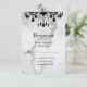 A black crystal chandelier and eerie type decorates this RSVP on a marble background. It is the coordinating RSVP for the Till Death Do Us Part Marble Wedding Collection. If additional coordinating items are needed just contact us at prettyfancyinvites@gmail.com with your request.