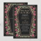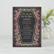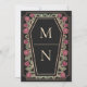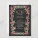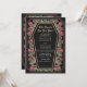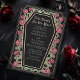 Make a bold statement of eternal love. This gothic wedding invitation features ‘Till Death Do Us Part’ in a coffin-shaped frame, adorned with thorns, roses, and rose gold accents against a black background. Perfect for a hauntingly romantic celebration! Personalize the text, font, and background colour to suit your design preferences. Matching Items in our shop for a complete party theme. Please note that the rose gold on the invitation is NOT real foil and is printed in flat colours.