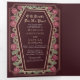 Make a bold statement of eternal love. This gothic wedding invitation features ‘Till Death Do Us Part’ in a coffin-shaped frame, adorned with thorns, roses, and rose gold accents against a rich red background. Perfect for a hauntingly romantic celebration! Personalize the text, font, and background colour to suit your design preferences. Matching Items in our shop for a complete party theme. Please note that the rose gold on the invitation is NOT real foil and is printed in flat colours