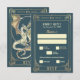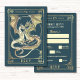 Enjoy the Tarot card "The Lovers" theme - teal and gold version, where the magical realms of tarot and the mythical world of dragons come together seamlessly. This mystical, mythical, and romantic theme showcases two dragons in love, echoing the symbolism of the tarot card "The Lovers". Ideal for weddings with a mystical or medieval theme, for tarot enthusiasts, Game of Thrones fans, and dragon aficionados alike. The inclusion of monograms enhances the RSVP's charm. The design exudes vintage elegance, with intricate details on both the front and back. The wording is completely editable. You can change size, colour, font, position in page.