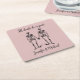 Till death do us part Skeleton Couple Name Rose Square Paper Coaster