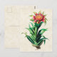 Postcard with a digitally cleaned and enhanced vintage image of an orange tillandria plant and flower on a parchment background. Illustrated by Etienne Denisse for Flore d'Amerique, published in Paris, 1843.