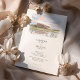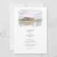 Clean, classic typography is centered beneath the artwork, leaving generous white space for a refined, gallery-print feel. The coordinating back continues the fine-art look with a closer architectural vignette of the venue above a “Finer Details” section, perfect for directions, schedule notes, transportation, or website information. All text is fully customizable, making this design ideal for rustic lodge, country club, estate, or lakeside weddings that want to highlight the beauty of their location in a timeless watercolor style.