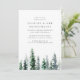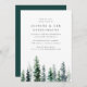 Elegant winter bridesmaids brunch invitation features a row of watercolor pine trees in rich shades of hunter and forest green. Personalize with your bridesmaid brunch details in chic off-black lettering. A beautiful choice for elegant winter bridal brunches in mountain, woodland, or forest settings.