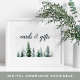 Designed to match our Timber Grove wedding collection, this elegant woodland chic sign directs guests to your card or gift table. Features "cards & gifts" in off-black calligraphy lettering with a bottom border of rustic watercolor pine trees in shades of hunter and forest green.