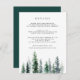 Designed to coordinate with our Timber Grove wedding collection, this elegant winter wedding enclosure card features a snowy forest scene with watercolor pine trees in shades of sage and hunter green. Customize with important details for your wedding guests, like welcome receptions, wedding weekend details, accommodations, transportation and your wedding website. You can even upload a map to the reverse side.