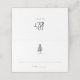 Wintry chic place card design features space for your guest name and table number, topped by a single watercolor pine tree illustration in muted hunter green. Personalize the back with your initials and wedding date. Designed to match our Timber Grove wedding and event collection for elegant rustic weddings in woodland or forest settings.