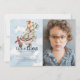 This cute and whimsical boy's birthday photo invitation features a bunny and a bear on an airplane with colourful balloons in the blue sky. The reverse side features a light blue background with cloud patterns. Personalize it for your needs. You can find more matching products at my store.