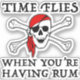 Time Flies When You're Having Rum. Funny quote pirate design is a great gift for a pirate lover who loves drinking rum. Perfect for Talk Like A Pirate Day or wear as a pirate costume on Halloween or at a party! If you love to drink rum and rum cocktails, you might be why the rum is gone! This funny saying pirate accessory has vintage text and a pirate skull and crossbones graphic.