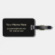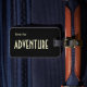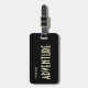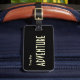 Black luggage tag, on the front is cream text that reads "Time For Adventure". On the back use the templates to add your name and details.