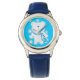 A cute and funny toothy molar bear scarf wearing toon polar bear parody kawaii style cartoon character funny and cheeky illustration animal fun design wildlife cute aesthetic fun wristwatch timepiece. Get a cute polar bear smile watch today.
