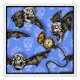 Time For Skull Bats (one of 6 designs) from the "Pop Goth Nightmare" Series 2022 by American artist Dean A. Kendrick. 20" x 20" glossy poster. Is there ever enough time for Skull Bats in the parlour? A gothic/pop art hybrid drawn by hand with marker on paper, digital process and colour.