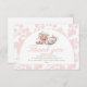 Classic tea party baby shower thank you design featuring pink floral toile with watercolor teapot and teacup artwork. A sweet and elegant way to show appreciation while keeping your stationery set cohesive.