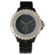 A classy and sophisticated women's watch. Black design face with rhinestone dial and white and blue accents in a beautiful black casing. Perfect for any occasion. Time Peace by Charlie Farm