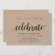Now it's time to celebrate, wedding elopement reception invitation card. This rustic kraft wedding elopement themed invitation card is perfect for your wedding reception and post-wedding celebration party. Add your details in matching black font / lettering.