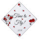 Elegant white graduation cap is adorned with red roses. The centre reads "Time to Fly" and the year. Stand out in the crowd with this beautiful tassel topper!